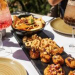 Aguacate en gajos: Con aliño de pesto de pistacho, aceite de orégano, mozzarella y pistacho garrapiñado.